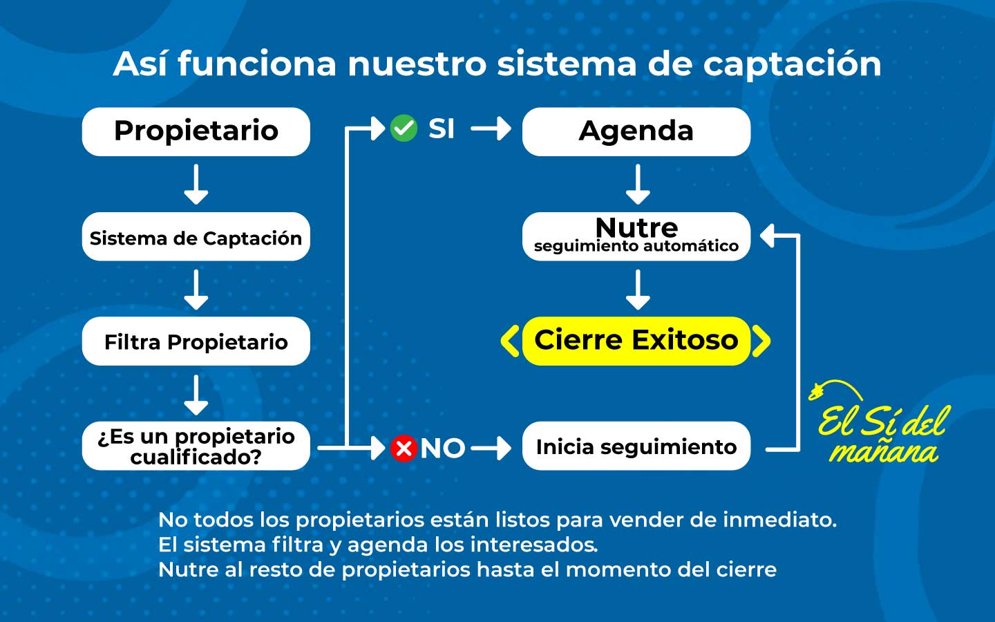 Mientras tu equipo atiende visitas y cierres, el sistema sigue captando, filtrando y agendando propietarios de forma automática.